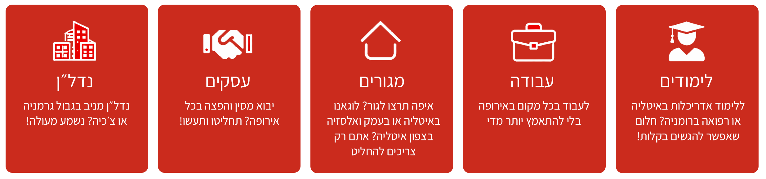 אנו מתמחים בהוצאת דרכונים אירופאים כבר שני עשורים ומציעים גם לך הליך פשוט, מהיר ונוח עם צוות מנוסה בתחום