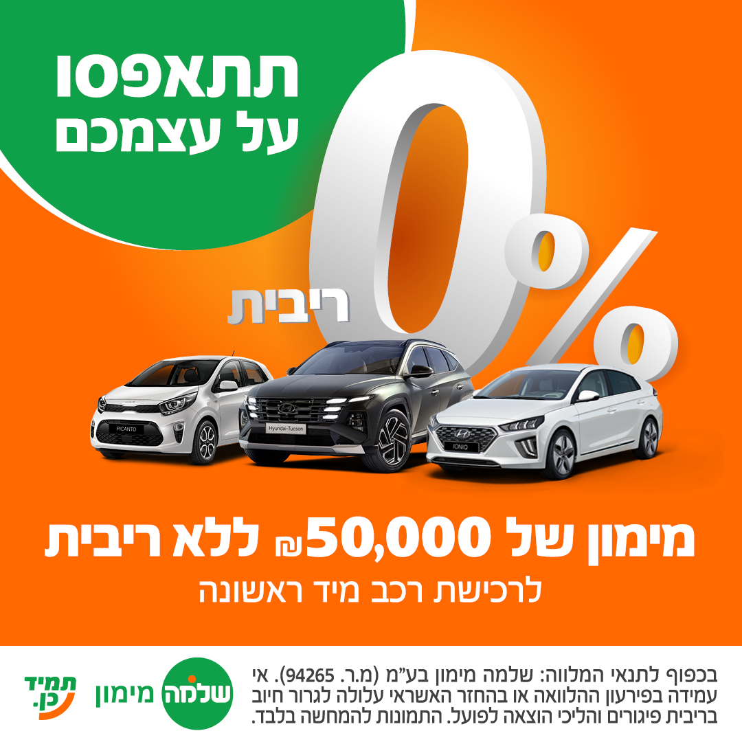במסגרת המסלול תהנו ממימון ₪50,000 בריבית 0% על מגוון ענק של רכבים מיד ראשונה.